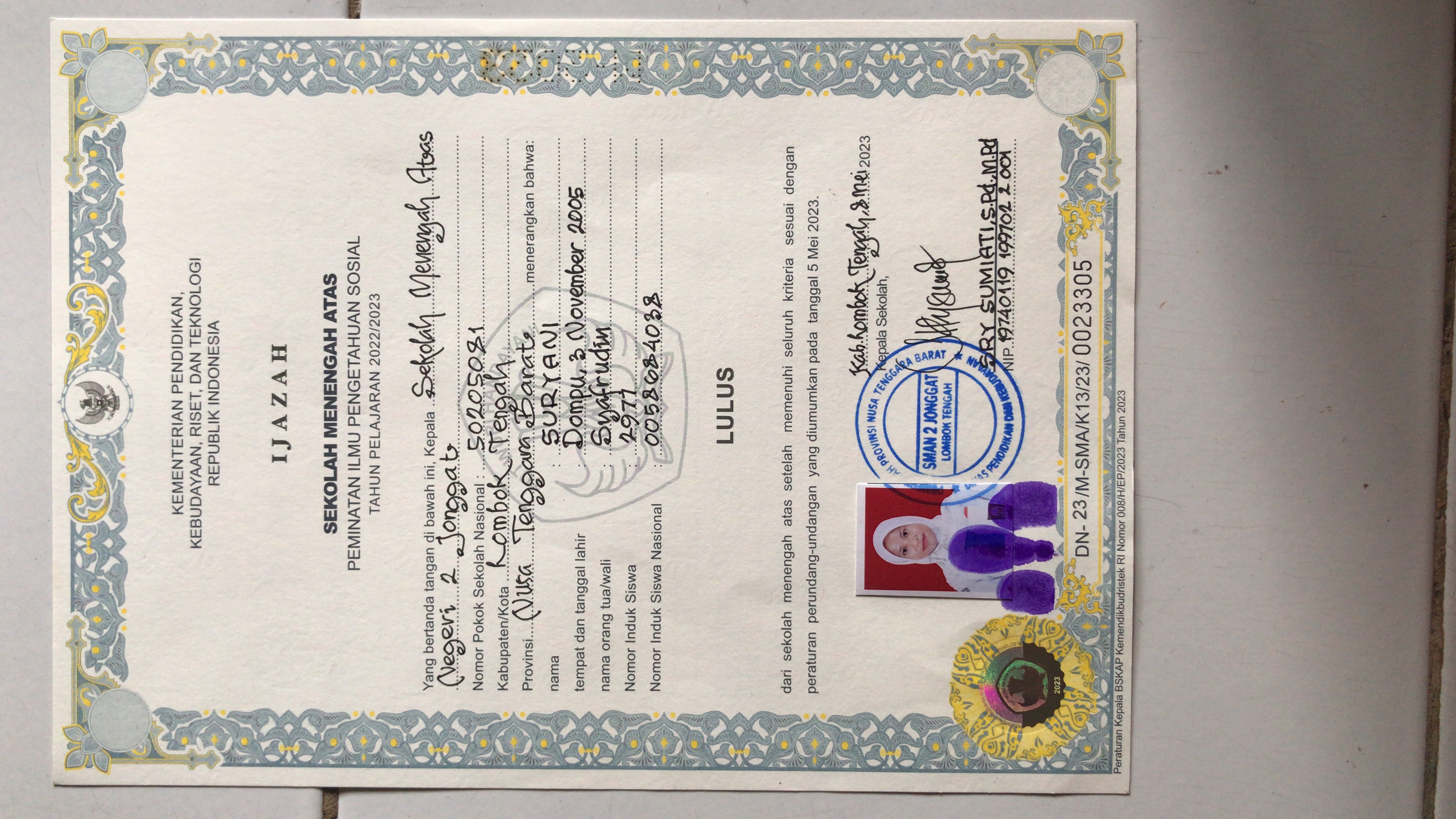 Index of /storage/app/public/mahasiswa/Gelombang III4/Umum20/Suryani520201431105000346434643/Ijazah SMP/SMA
