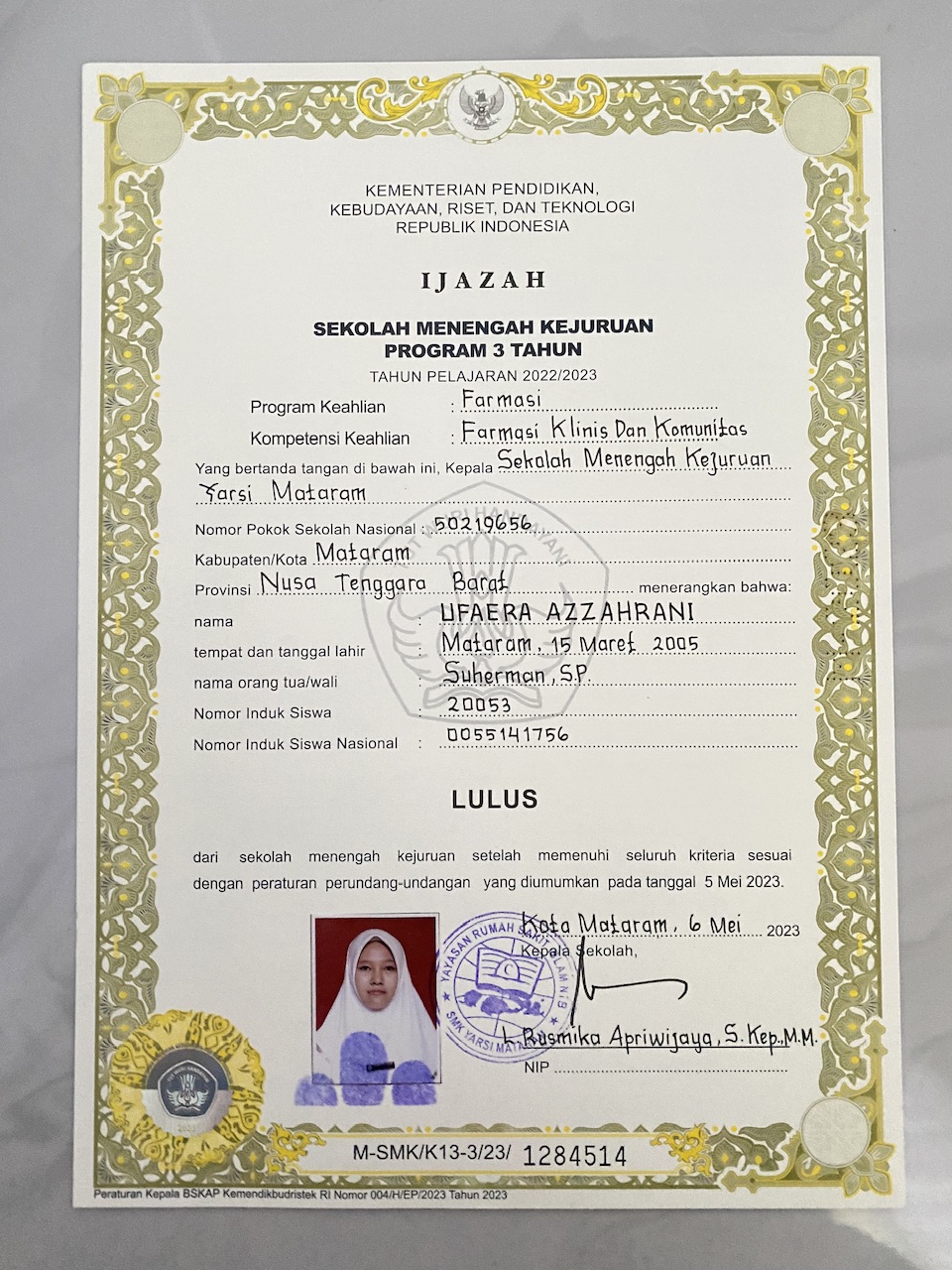 Index of /storage/app/public/mahasiswa/Gelombang III4/Umum20/Ufaera Azzahrani520108550305000637553755/Ijazah SMP/SMA