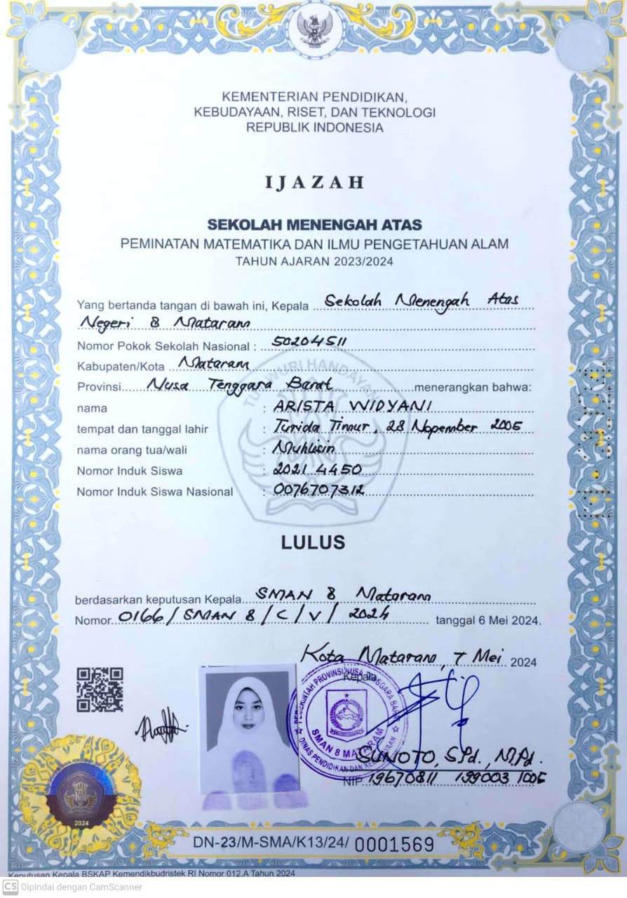 Index of /storage/app/public/mahasiswa/Gelombang III8/Bidikmisi54/ARISTA WIDYANI527106681105000192409237/Ijazah SMP/SMA