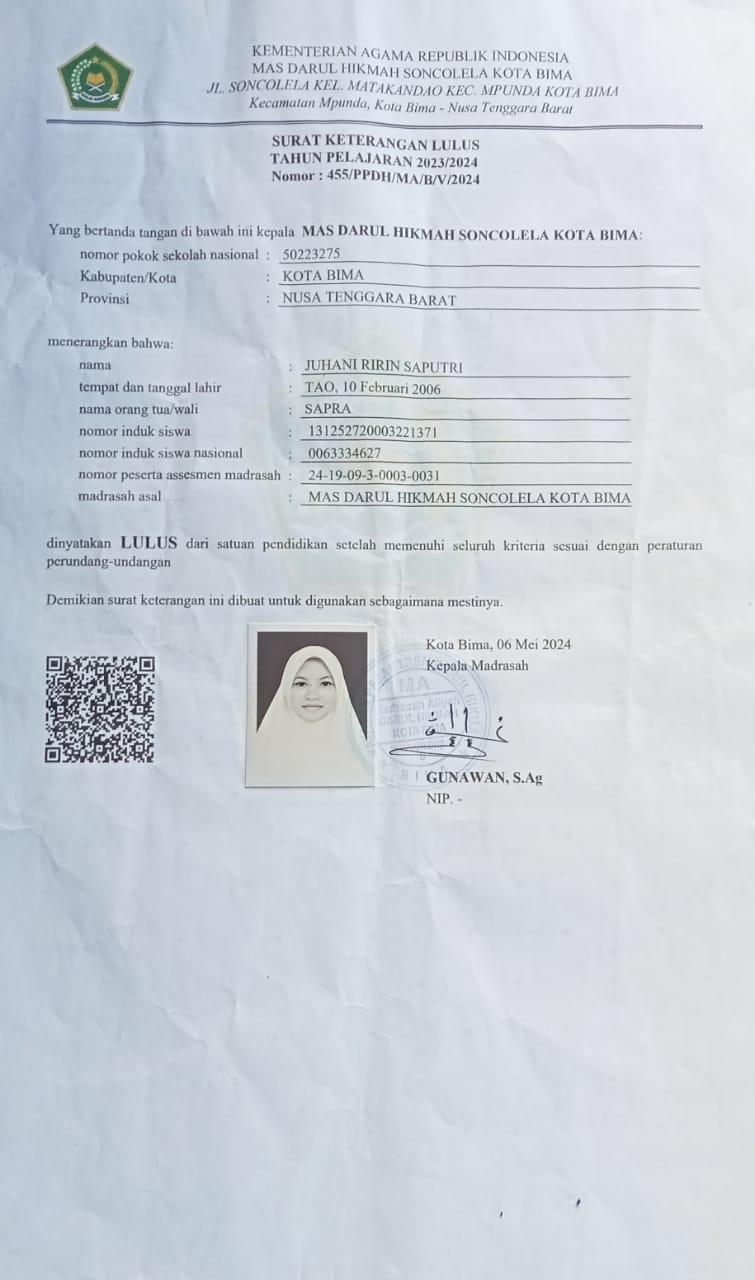 ![]() | Surat keterangan lulus sekolahJunahi Ririn Saputri93399336og7zlF6pIQ.jpg | 2024-08-05 08:44 | 72K | |