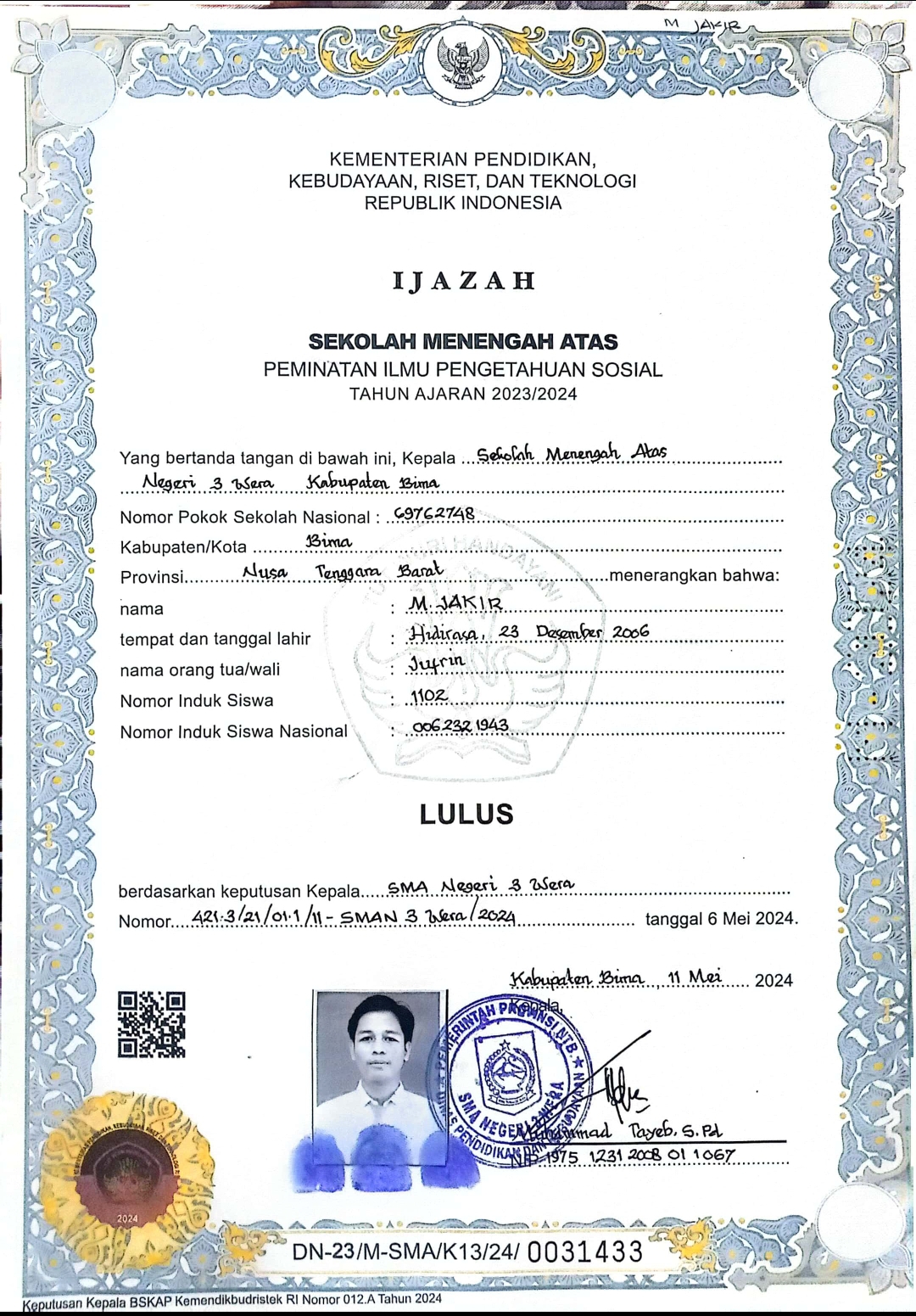 Index of /storage/app/public/mahasiswa/Gelombang III8/Bidikmisi54/M. JAKIR520607231206000195529549/Ijazah SMP/SMA
