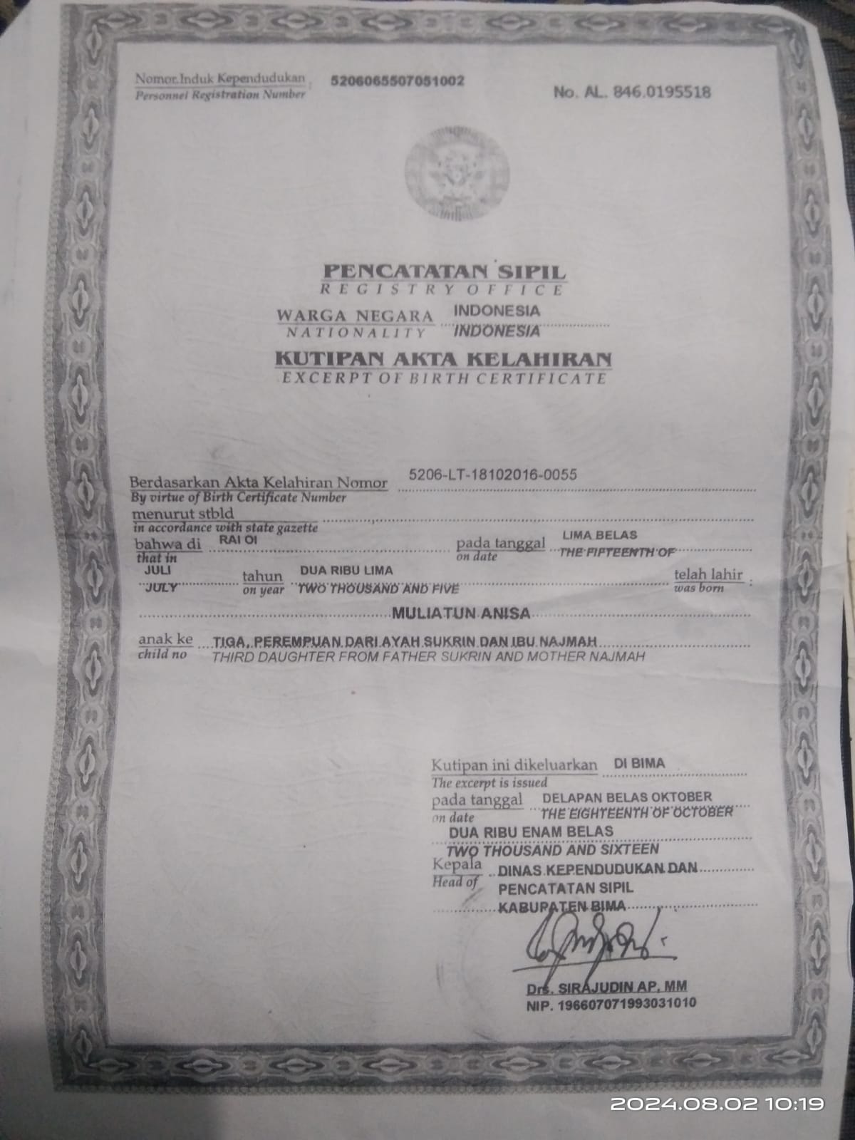 ![]() | Akta KelahiranMULIATUN ANISA91189115Asbad1F8X6.jpg | 2024-08-02 09:42 | 138K | |