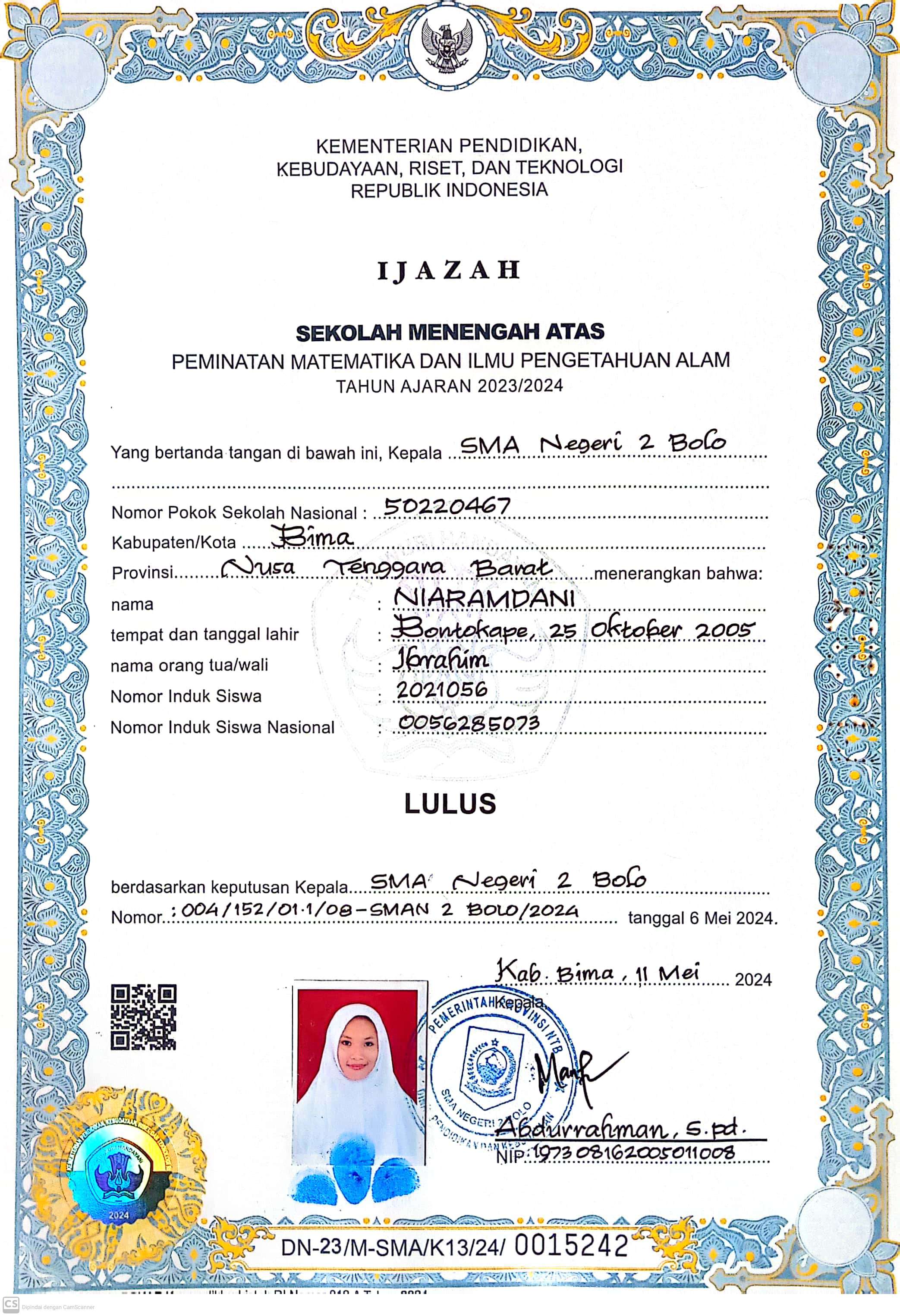 Index of /storage/app/public/mahasiswa/Gelombang III8/Bidikmisi54/NIARAMDANI520602651005100486858683/Ijazah SMP/SMA