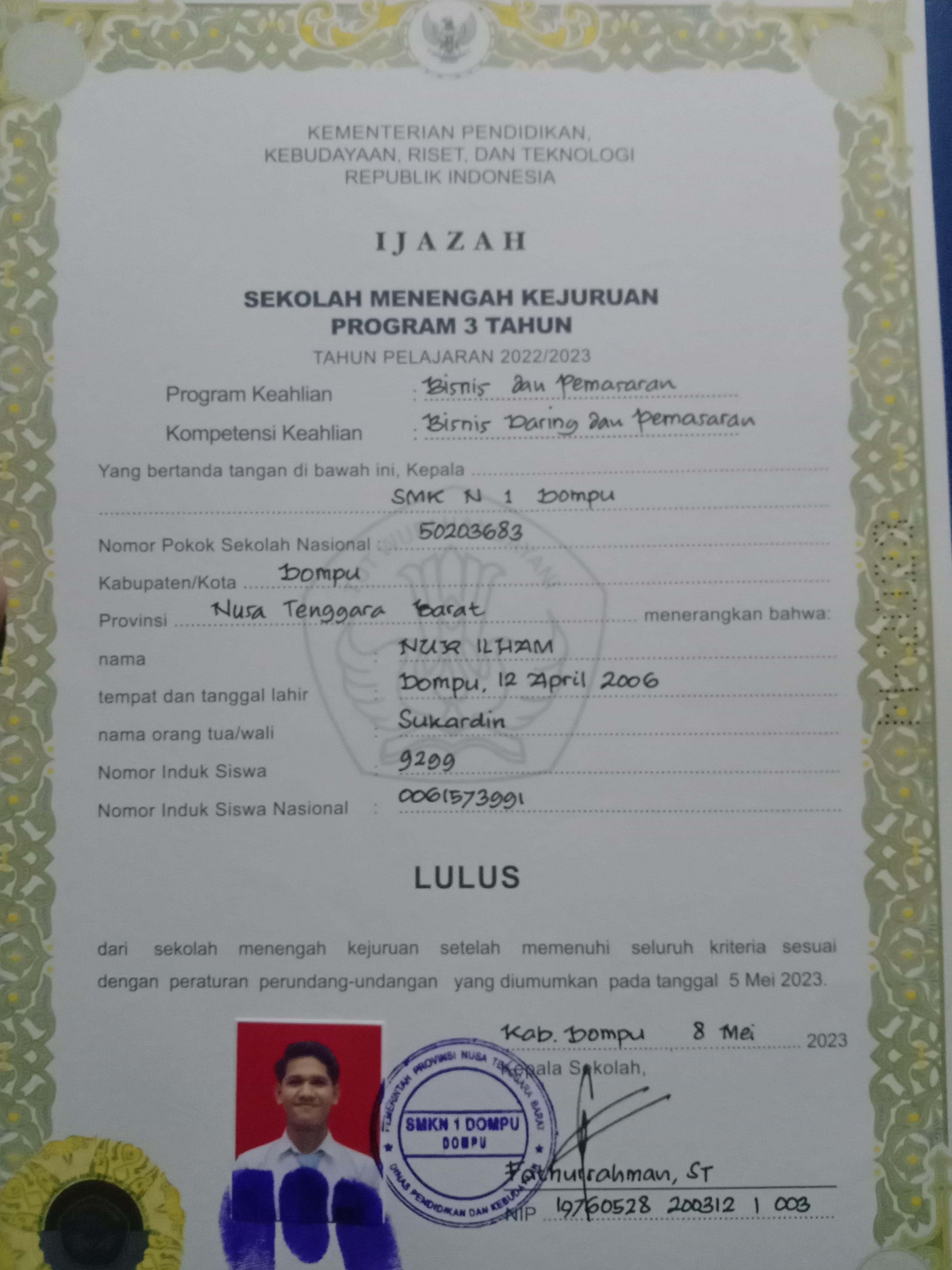 Index of /storage/app/public/mahasiswa/Gelombang III8/Bidikmisi54/Nur ilham520501120406000581268125/Ijazah SMP/SMA
