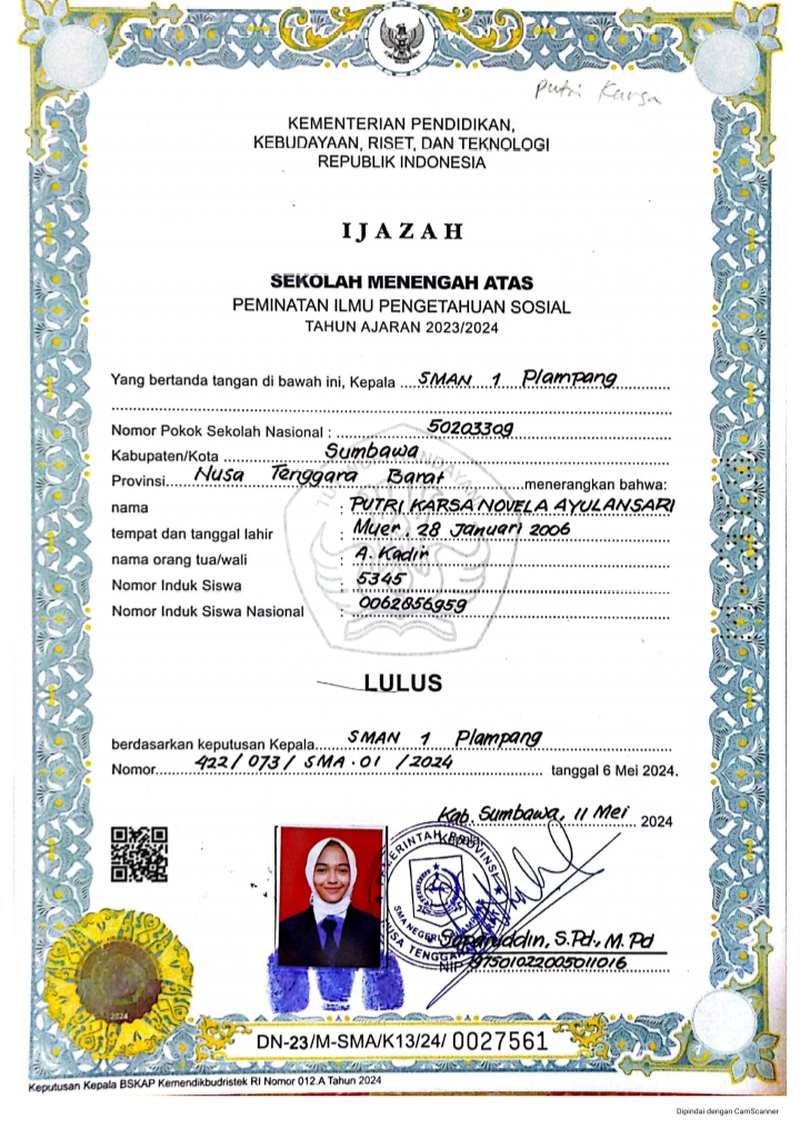 ![]() | Surat keterangan lulus sekolahPUTRI KARSA NOVELA AYULANSARI819481929ELTlV4amT.jpg | 2024-08-02 01:46 | 497K | |