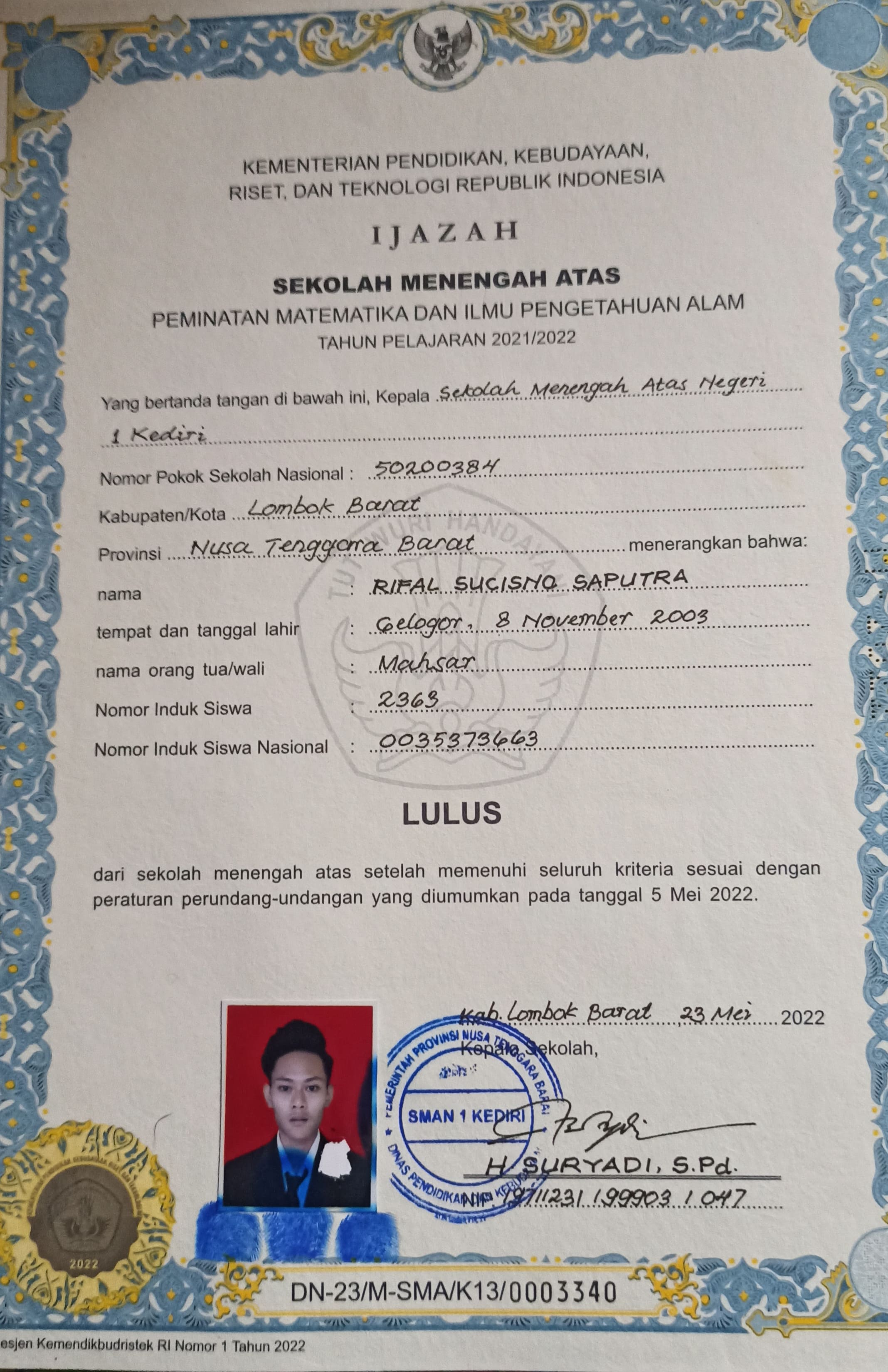 Index of /storage/app/public/mahasiswa/Gelombang III8/Bidikmisi54/Rival Sucisno Saputra520102240604000181548153/Ijazah SMP/SMA