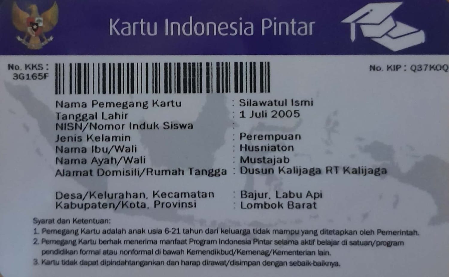 Index of /storage/app/public/mahasiswa/Gelombang III8/Bidikmisi54/Silawatul ismi520108550705000586698667/kartu KIP/PKH/KKS