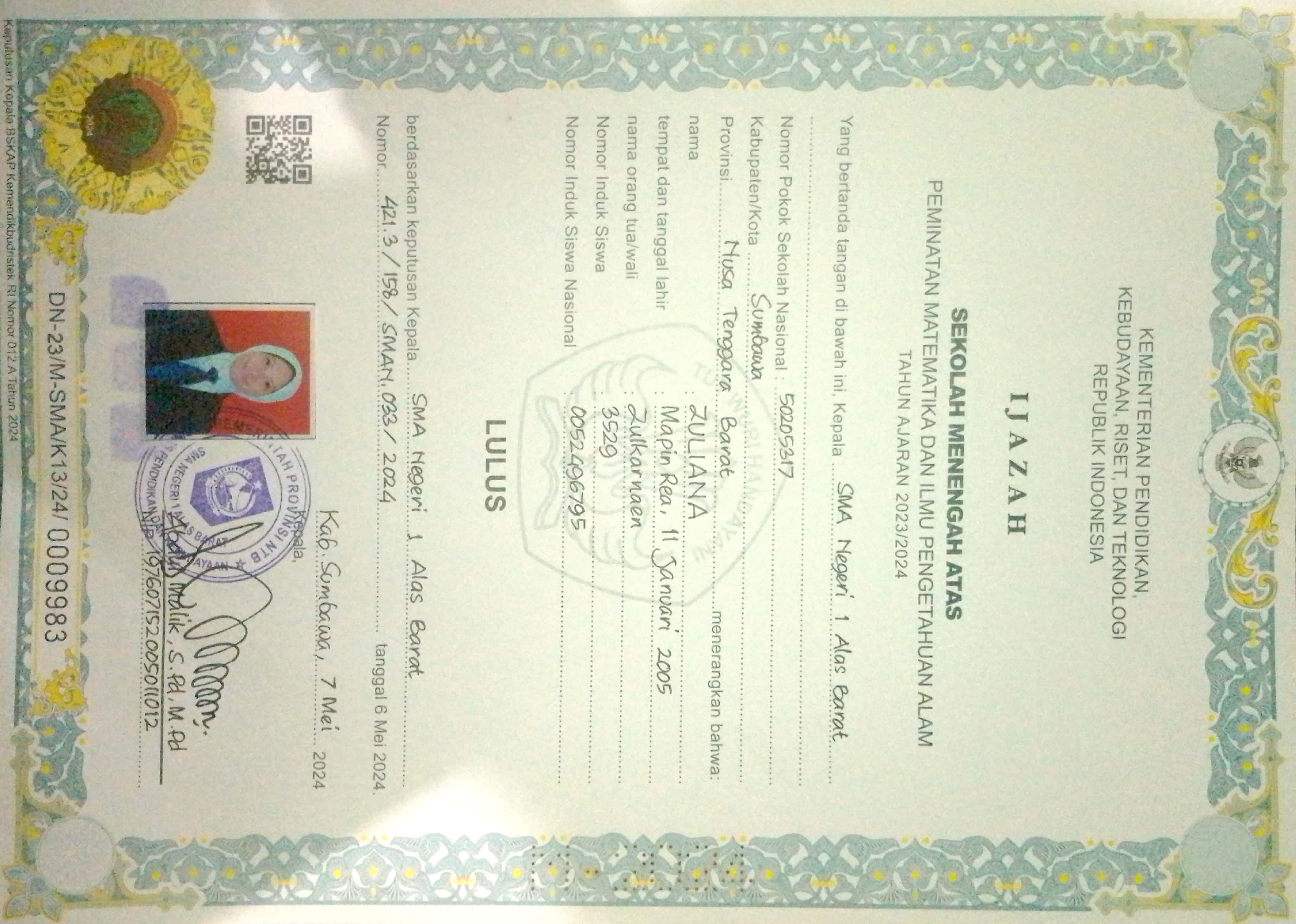 Index of /storage/app/public/mahasiswa/Gelombang III8/Bidikmisi54/Zuliana520417510105000296639660/Ijazah SMP/SMA