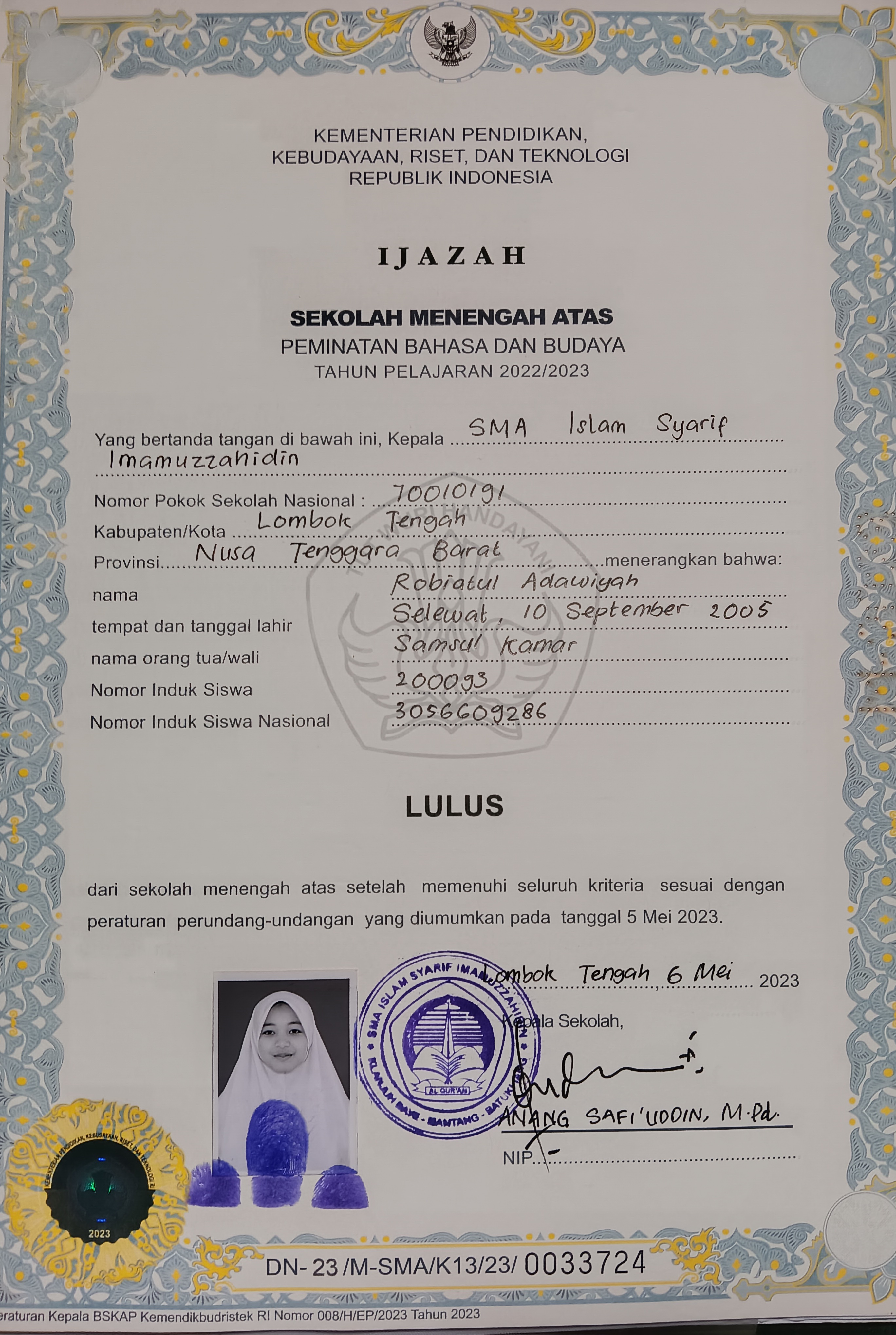 Index of /storage/app/public/mahasiswa/Gelombang III8/Bidikmisi54/robiatul adawiyah52021250090500011016710164/Ijazah SMP/SMA