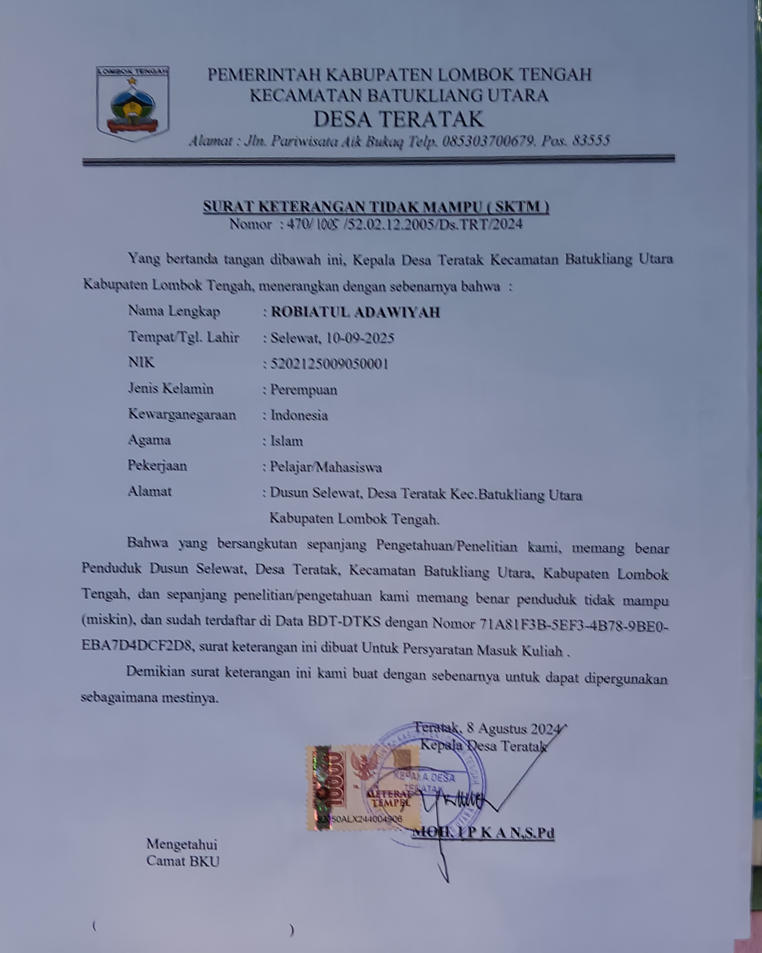 Index of /storage/app/public/mahasiswa/Gelombang III8/Bidikmisi54/robiatul adawiyah52021250090500011016710164/kartu KIP/PKH/KKS