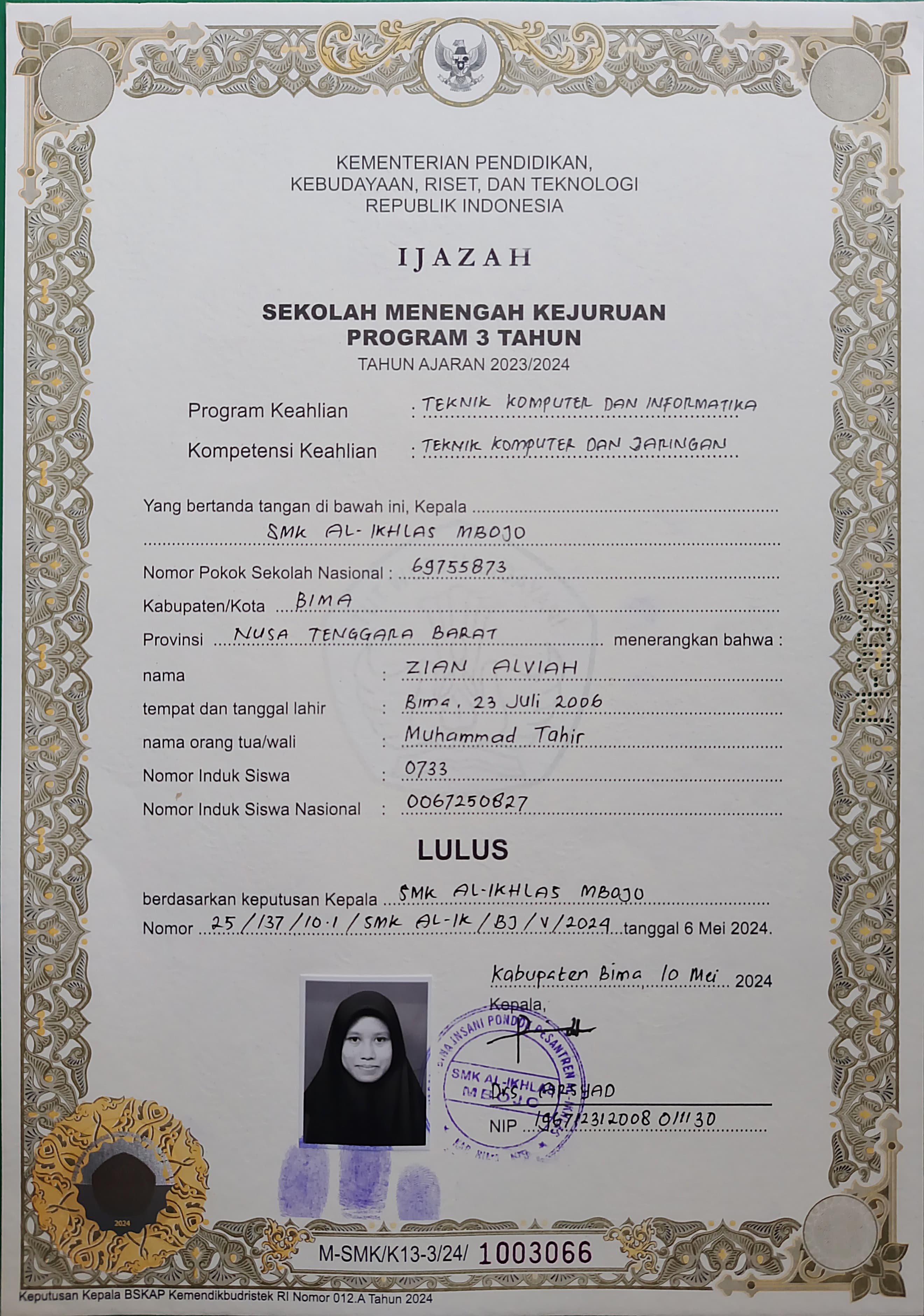 Index of /storage/app/public/mahasiswa/Gelombang III8/Prestasi Akademik55/ZIAN ALVIAH520501630706000381938191/Ijazah SMP/SMA