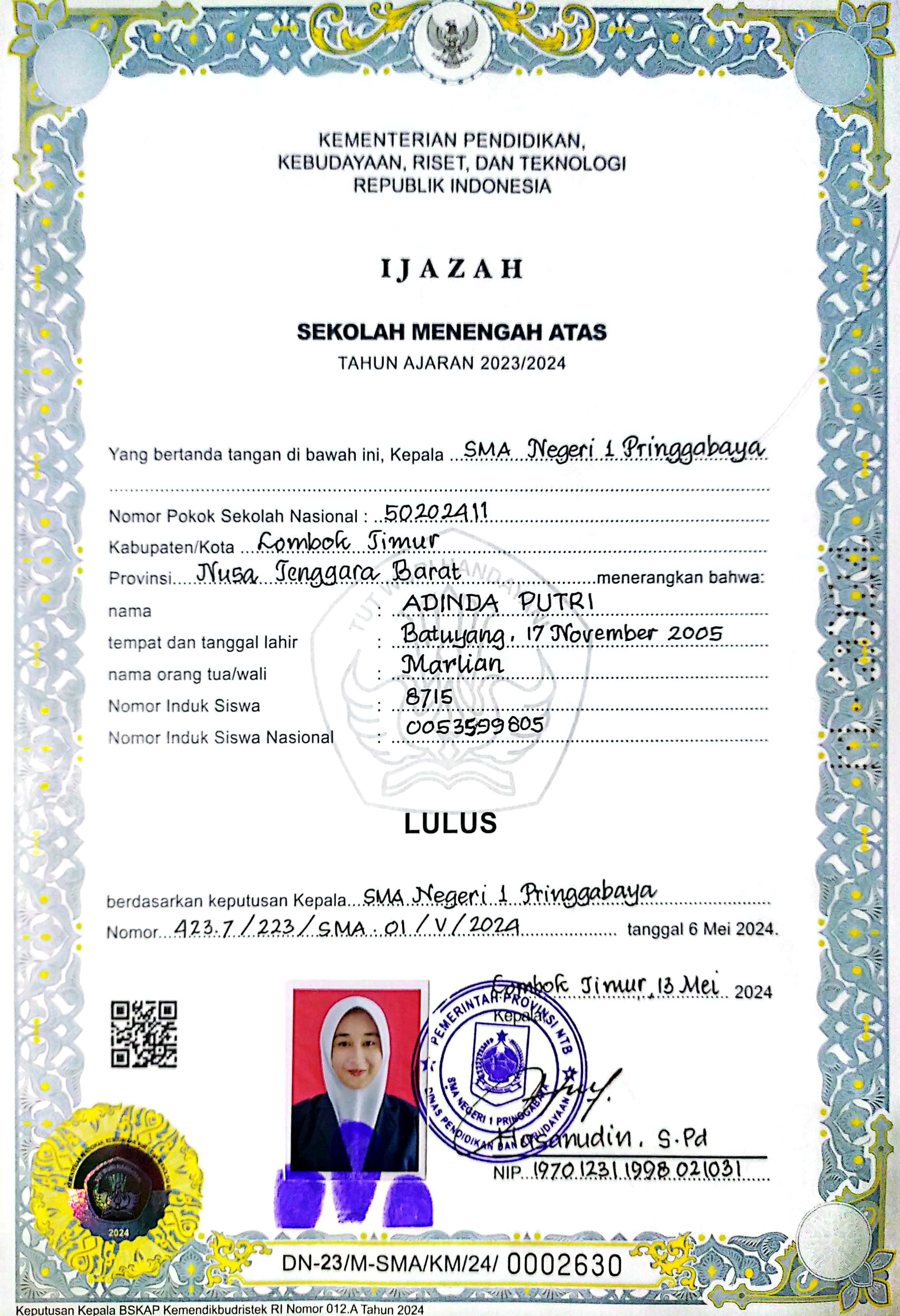 Index of /storage/app/public/mahasiswa/Gelombang III8/Umum53/ADINDA PUTRI520308571105000297189715/Ijazah SMP/SMA