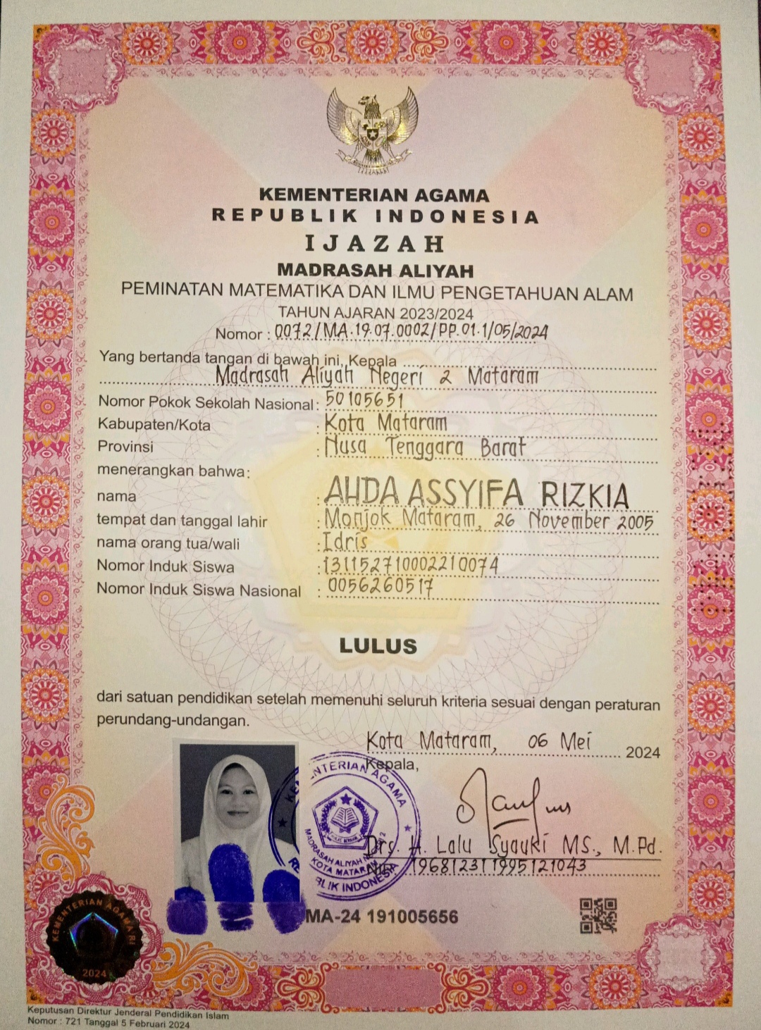 Index of /storage/app/public/mahasiswa/Gelombang III8/Umum53/AHDA ASSYIFA RIZKIA527105661105000195349531/Ijazah SMP/SMA