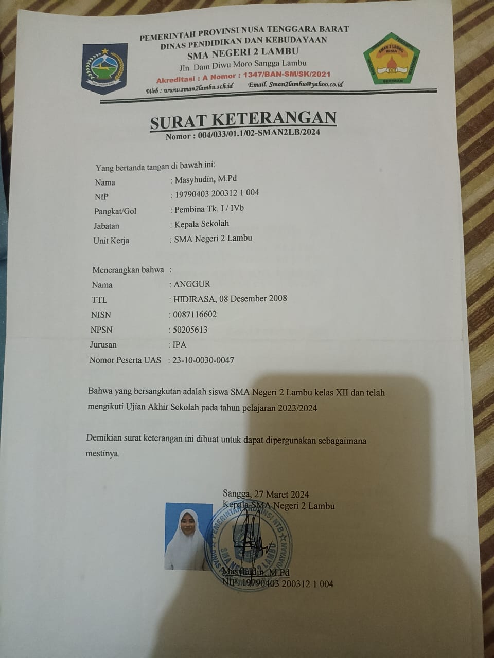 ![]() | Surat keterangan lulus sekolahANGGUR98569853RcOY6nDuJG.jpg | 2024-08-21 13:02 | 94K | |