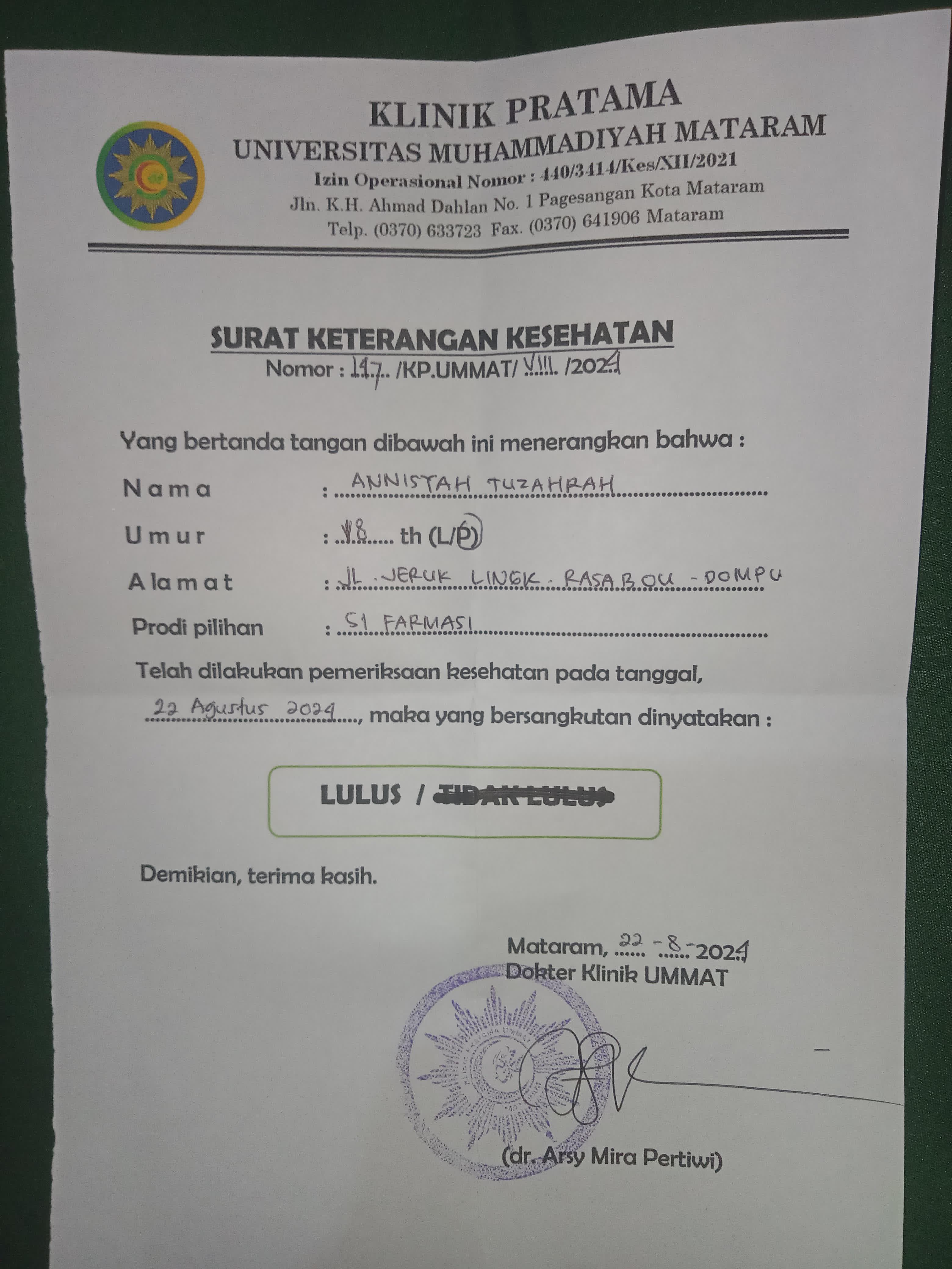 ![]() | Surat keterangan sehat jasmani dan rohaniAnnisyah Tuzahrah93189315eZcWxr21r7.JPG | 2024-08-26 12:44 | 404K | |