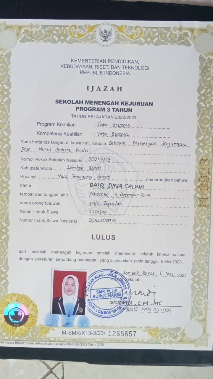 Index of /storage/app/public/mahasiswa/Gelombang III8/Umum53/Baiq Dina Salwa520107411204000199229919/Ijazah SMP/SMA