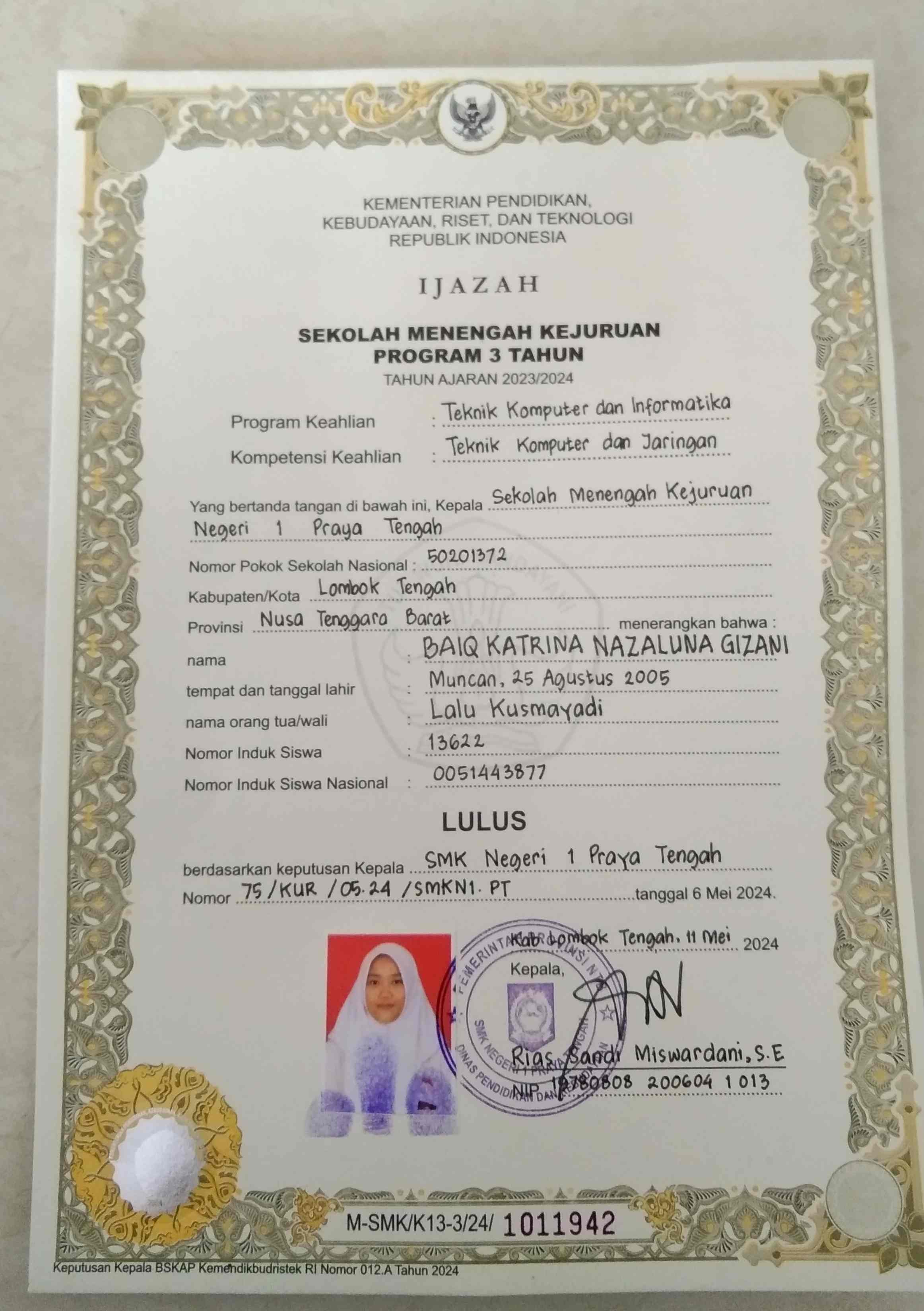 ![]() | Surat keterangan lulus sekolahBaiq Katrina nazaluna gizani86568654jiJu0Xe2GU.jpg | 2024-07-30 05:16 | 269K | |
