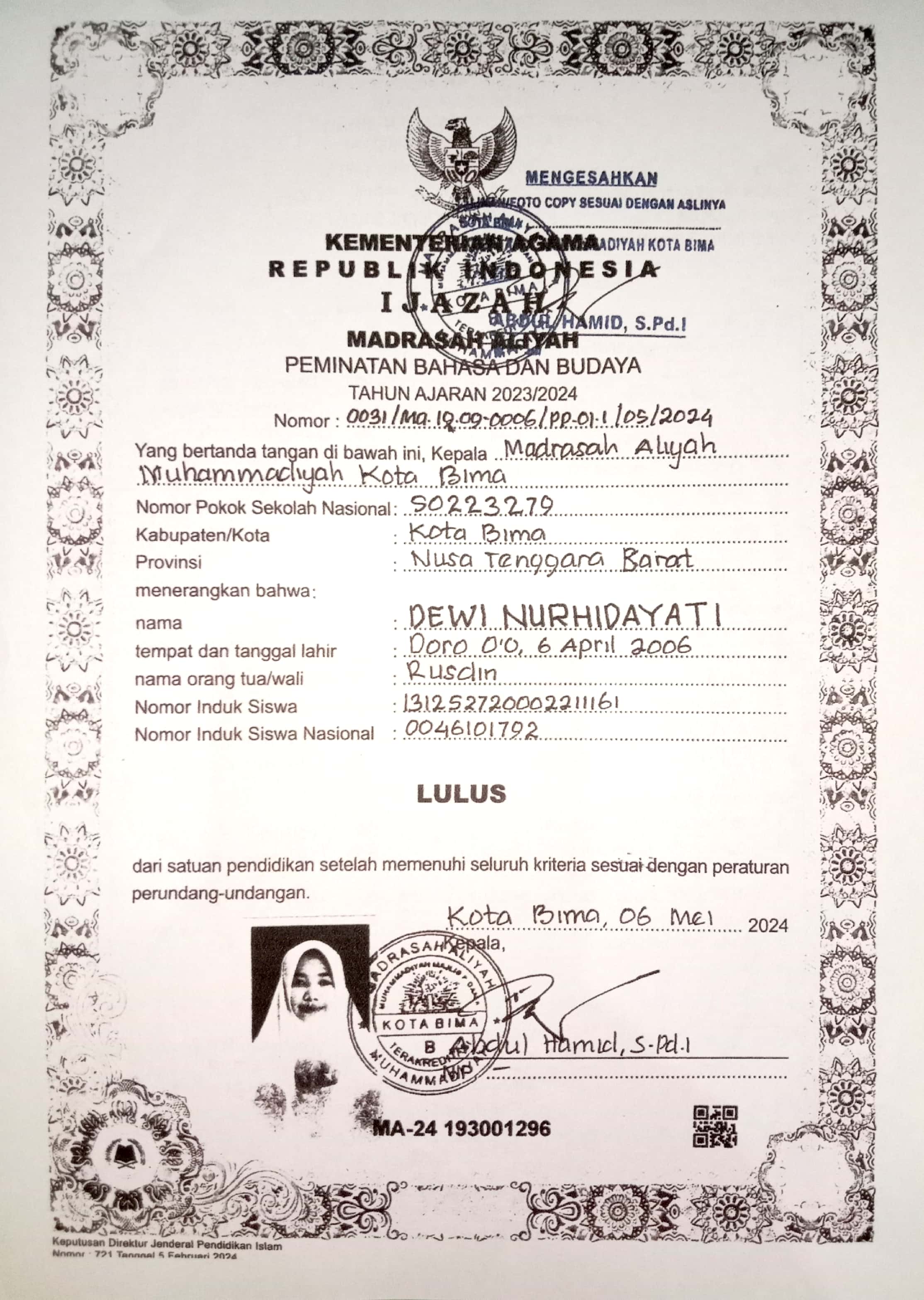 Index of /storage/app/public/mahasiswa/Gelombang III8/Umum53/Dewi nurhidayati520611460406000398579854/Ijazah SMP/SMA