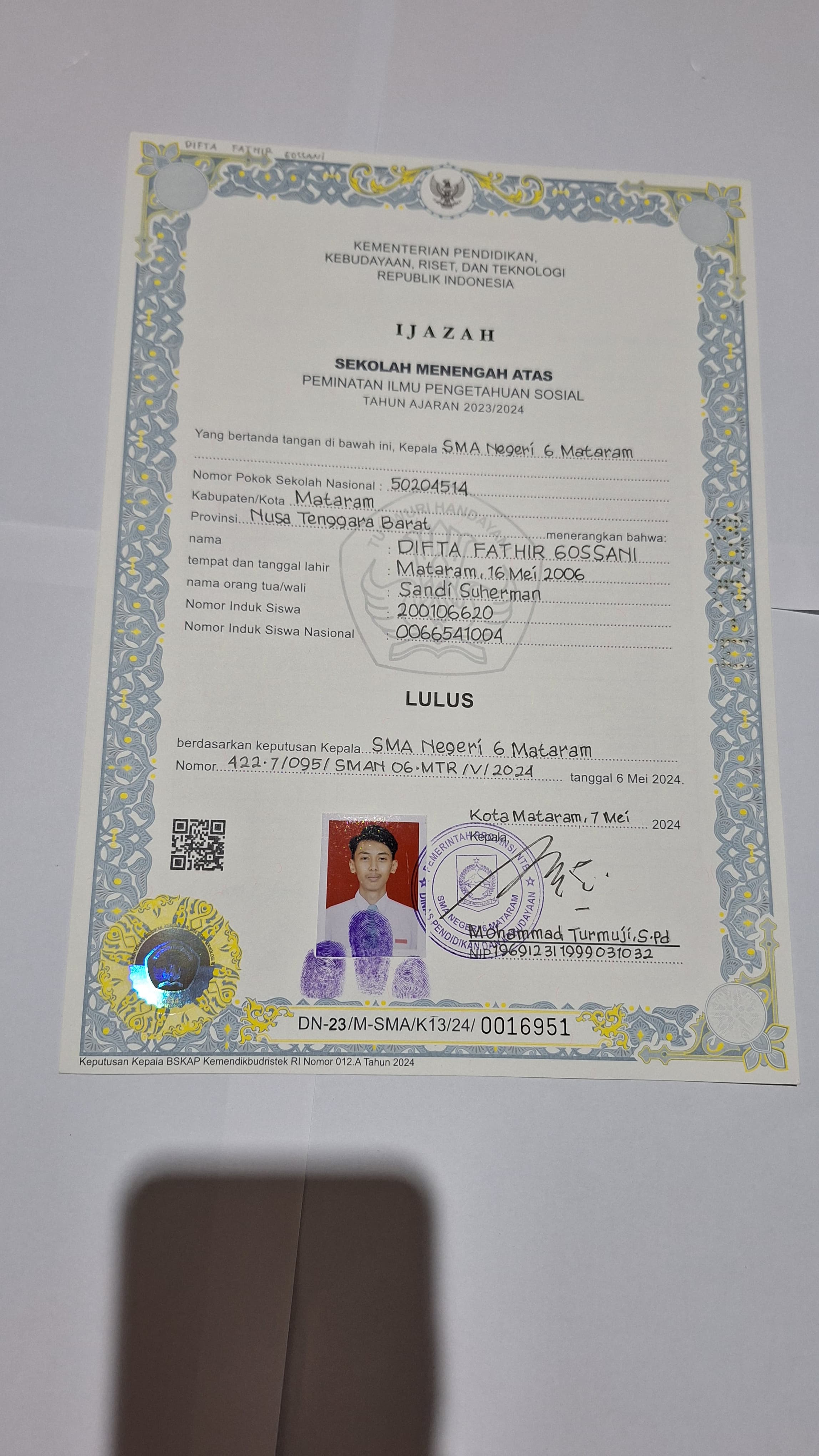 Index of /storage/app/public/mahasiswa/Gelombang III8/Umum53/Difta fathir gossani52710216050600011005810055/Ijazah SMP/SMA