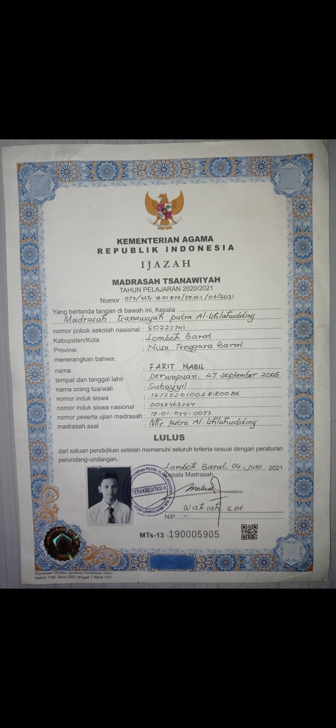 Index of /storage/app/public/mahasiswa/Gelombang III8/Umum53/FARIT NABIL52010827090500041008810085/Ijazah SMP/SMA