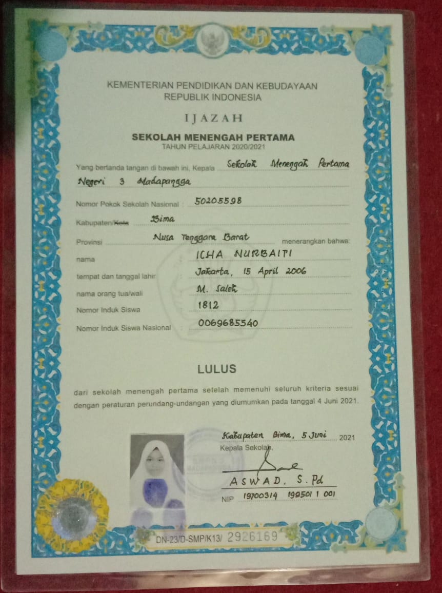 Index of /storage/app/public/mahasiswa/Gelombang III8/Umum53/ICHA NURBAITI52061355040600011015610153/Ijazah SMP/SMA