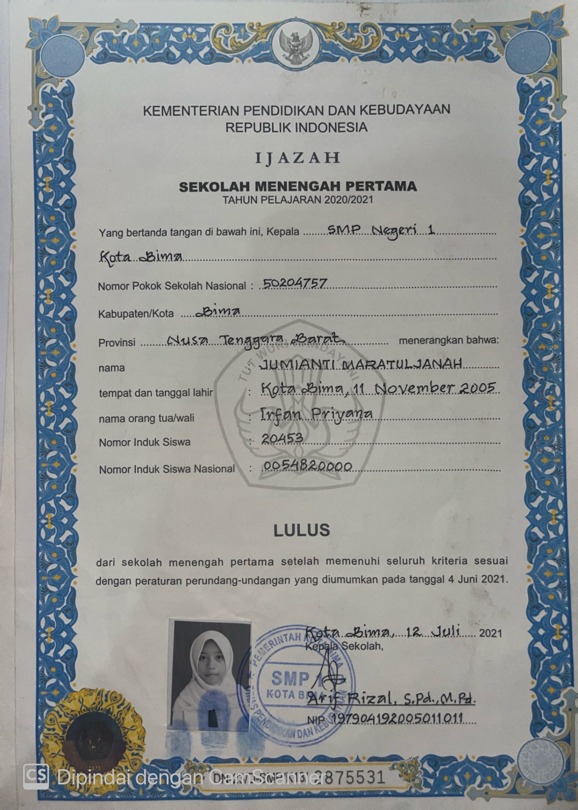 Index of /storage/app/public/mahasiswa/Gelombang III8/Umum53/Jumianti Maratul Janah527201511105000189528949/Ijazah SMP/SMA