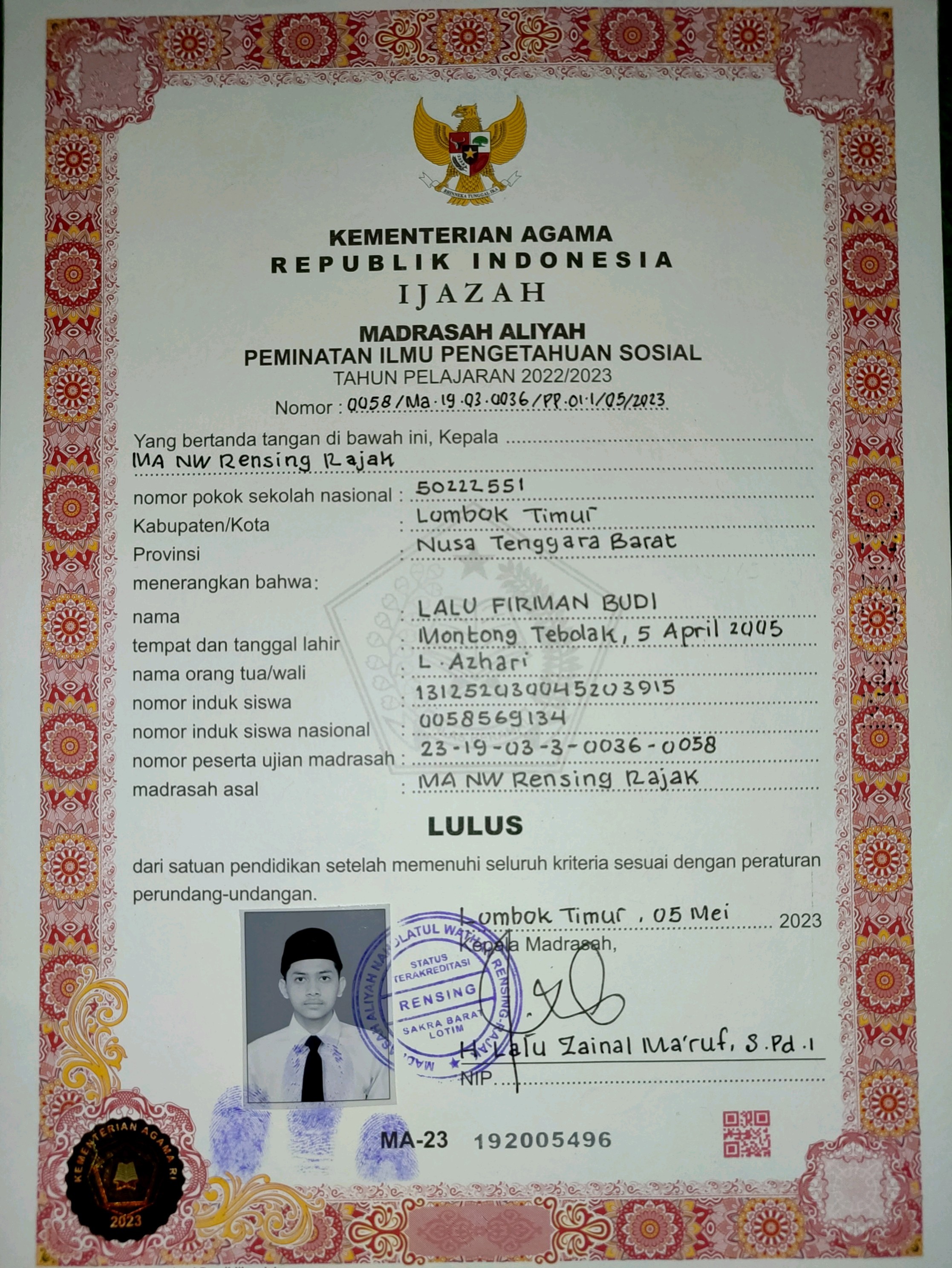 Index of /storage/app/public/mahasiswa/Gelombang III8/Umum53/LALU FIRMAN BUDI520319050405000289178914/Ijazah SMP/SMA