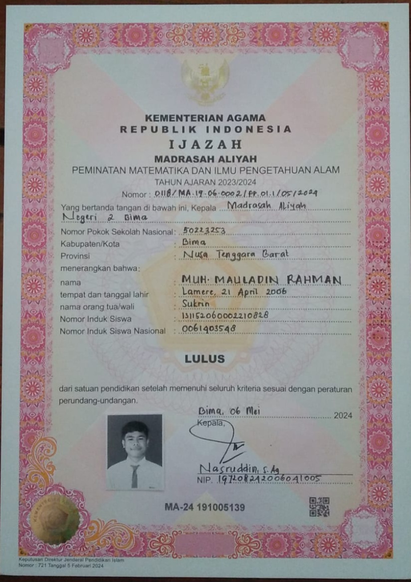 Index of /storage/app/public/mahasiswa/Gelombang III8/Umum53/MUH. MAULADIN RAHMAN520606210406100296889685/Ijazah SMP/SMA