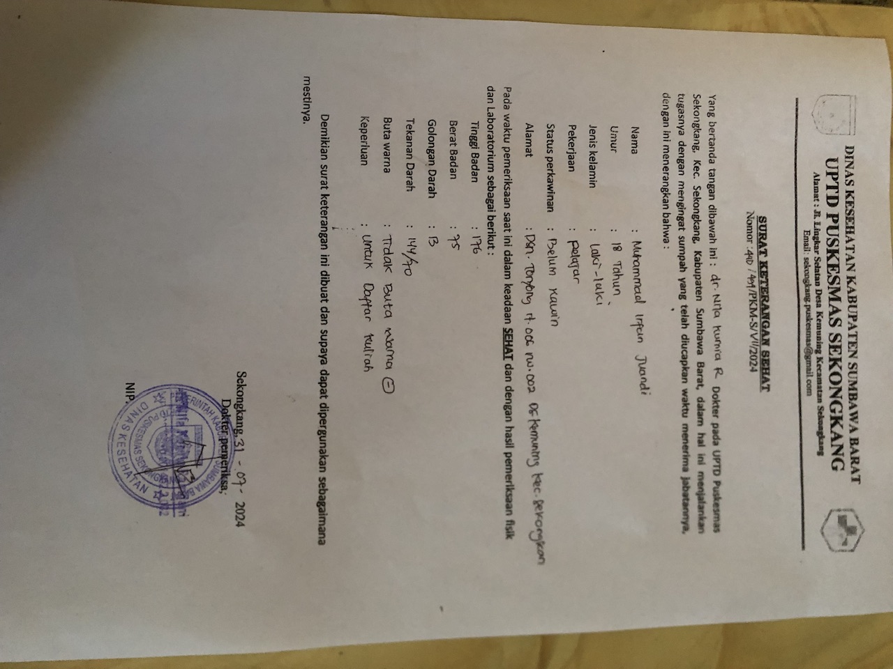 ![]() | Surat keterangan tidak buta warnaMUHAMAD IRFAN JUANDI87248721YYEOKFcIpJ.jpeg | 2024-07-31 03:53 | 231K | |