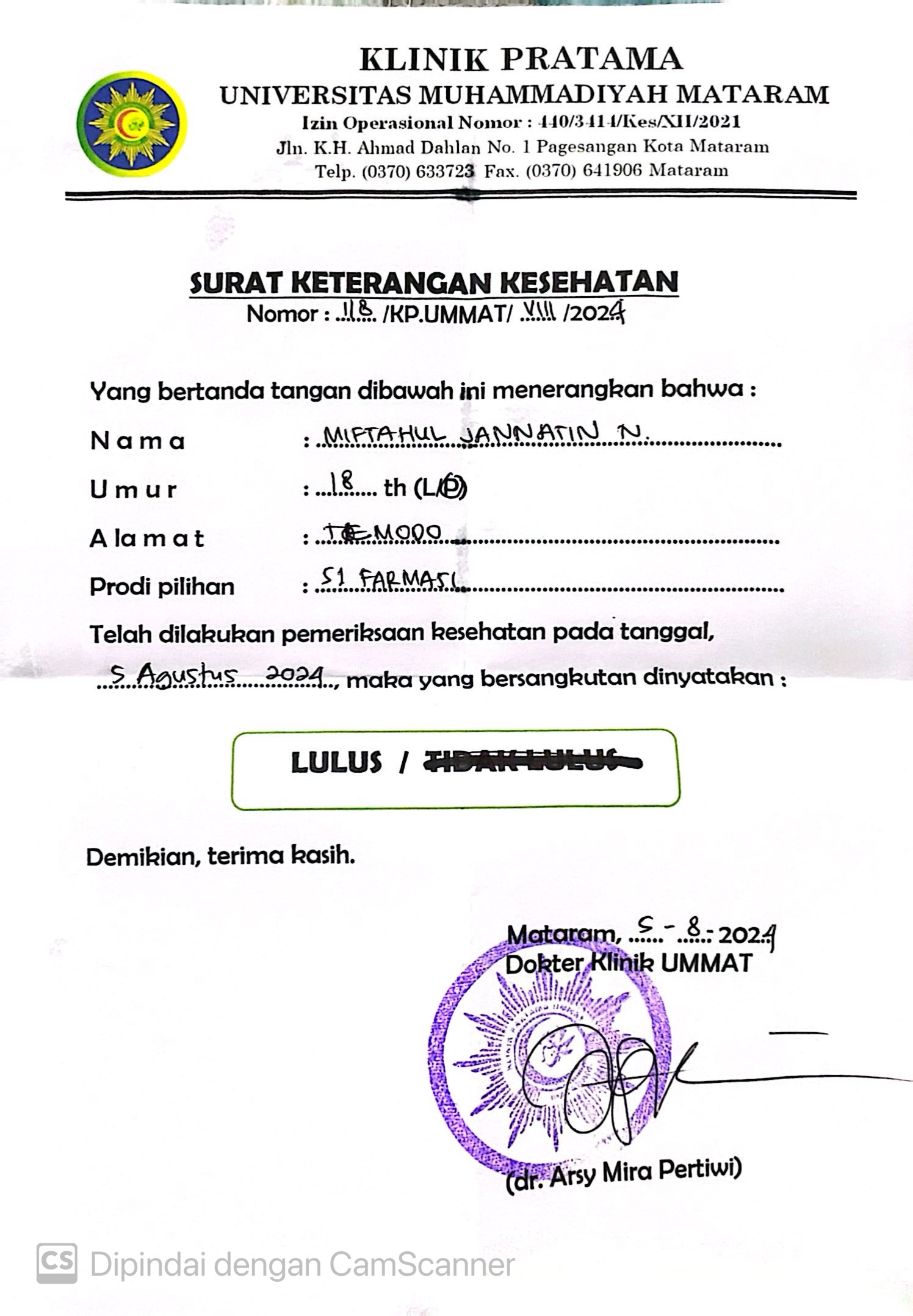 ![]() | Surat keterangan sehat jasmani dan rohaniMiftahul Jannatin Naimah87768773Zaag49QOWI.jpeg | 2024-08-07 23:32 | 467K | |