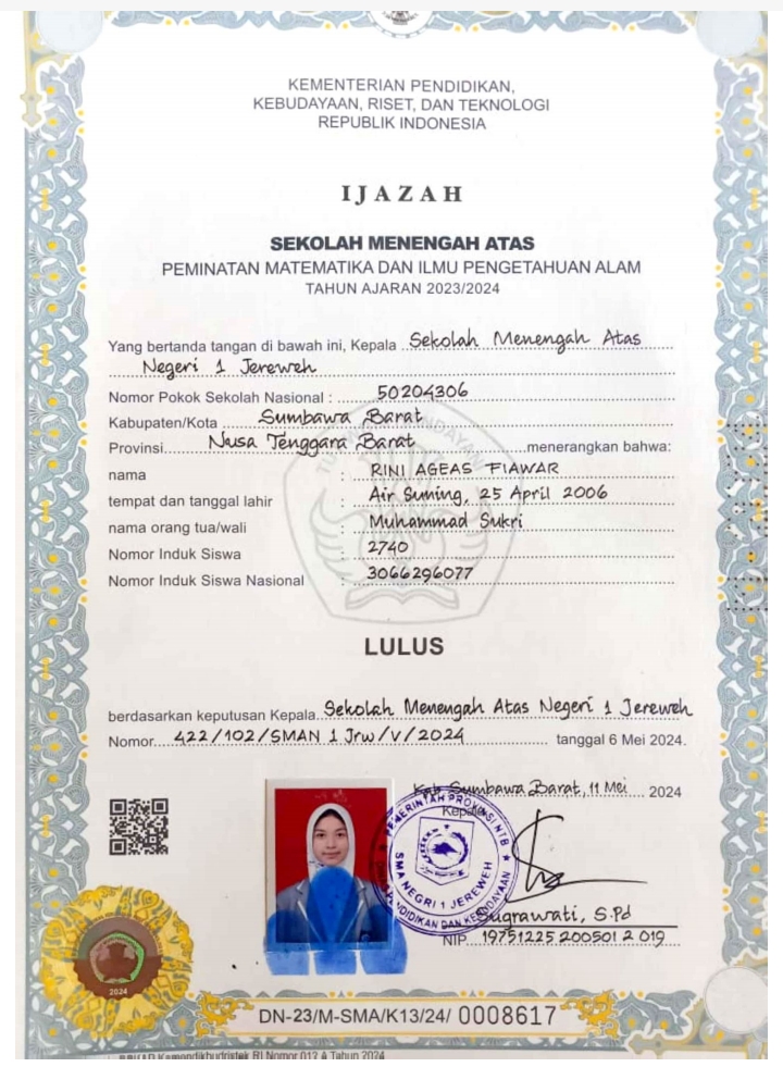 Index of /storage/app/public/mahasiswa/Gelombang III8/Umum53/Rini Ageas Fiawar520701650406000198209817/Ijazah SMP/SMA