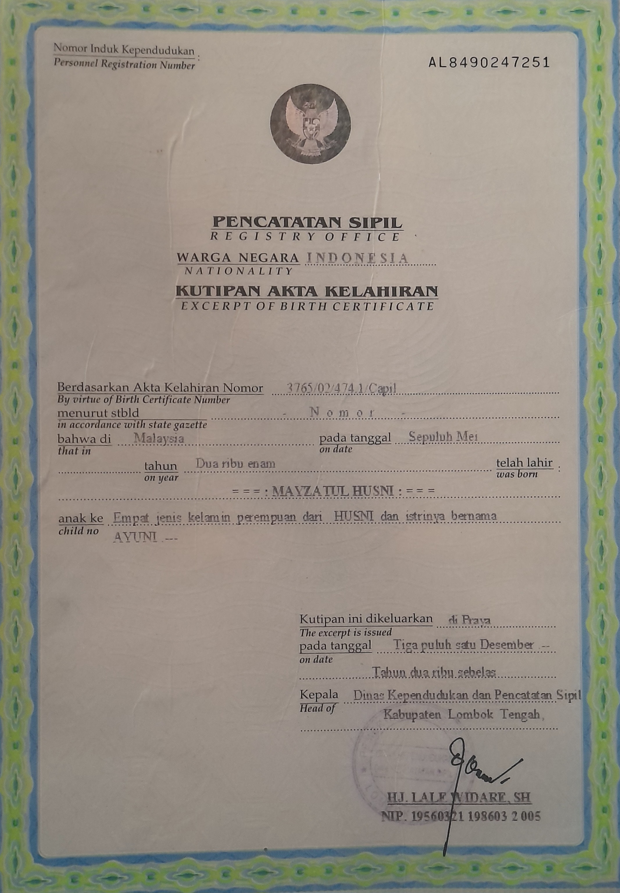 ![]() | Akta Kelahiranmayzatul husni98749871Z1q1qRZvsC.jpg | 2024-08-20 10:55 | 1.1M | |