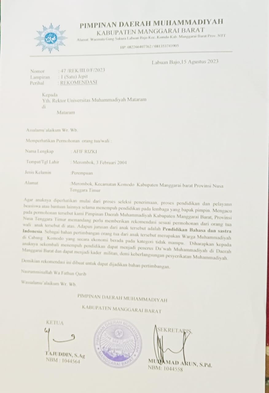 ![]() | Surat Rekomendasi pengaantar dari PP Muhammadiyah (Kepala Sekolah)AFIF RIZKI50655065Xj7C2y1duc.jpg | 2023-09-02 07:19 | 61K | |